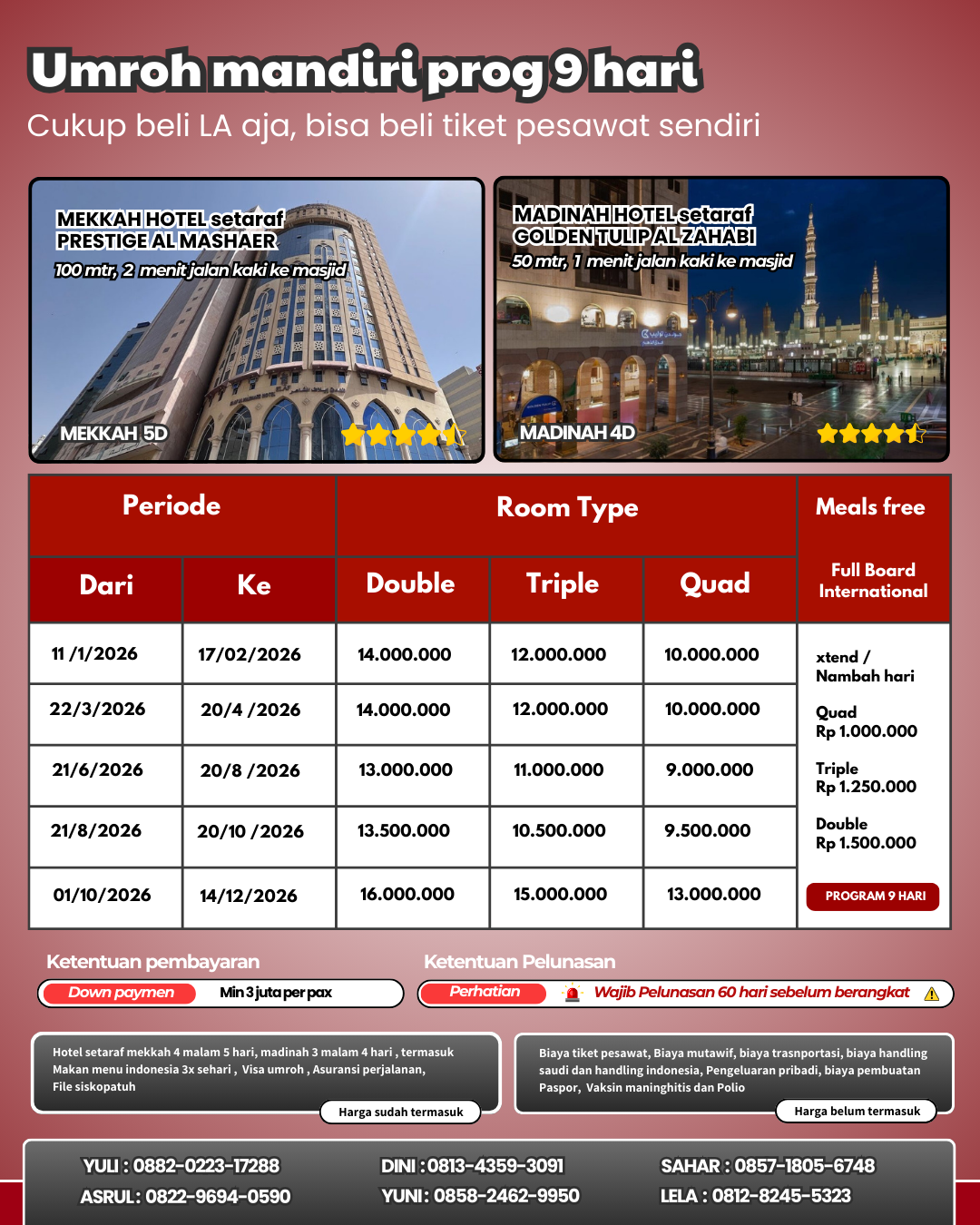 SPECIAL! buat kamu yang mau umroh nyaman harga bersahabat