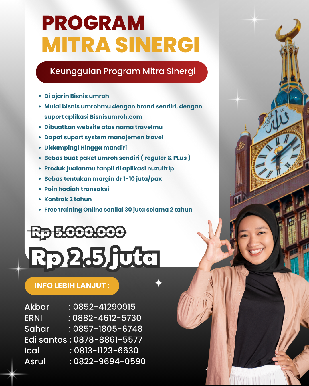 Sinergi dalam membangun Bisnis Umroh Mandiri : mendampingi para calon Owner yang ingin memiliki dan mengembangkan usaha travel umroh sendiri.